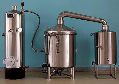 商品结构:分体式蒸馏设备。包括锅炉、酒料桶和冷却器
